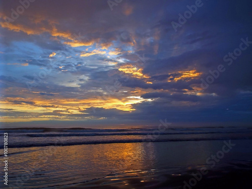 © Frank Jr, Fototapeta premium Cloudy Sunset Over the Ocean with Waves in the Foreground