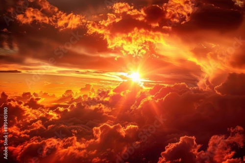 Naklejka premium Cloudy Sunset. Red Sky with Beautiful Clouds and Setting Sun