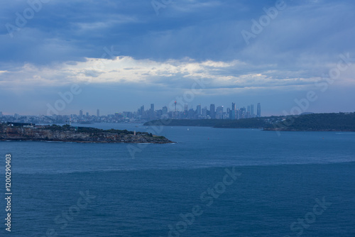 © AlexandraDaryl, Naklejka premium Cloudy view of Sydney skyline at sunset time.