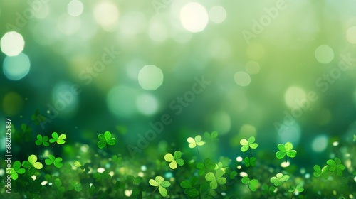 © FantasyDreamArt, Fototapeta premium Clover Confetti with Green Bokeh Background