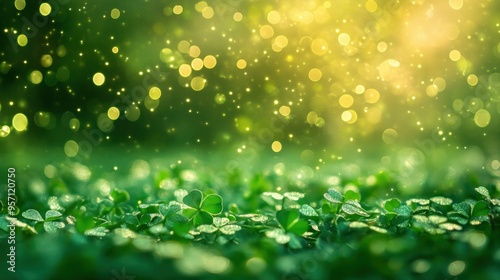 © hanafi 99d, Fototapeta premium Clover Field with Golden Light