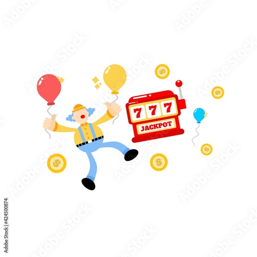 Obraz premium clown carnival and casino slot game cartoon doodle flat design style vector illustration