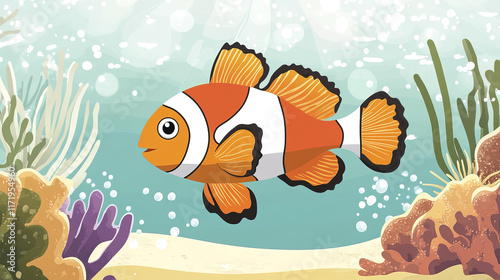 Fototapeta premium clownfish swimming gracefully near vibrant coral reefs in ocean