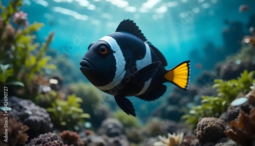 Fototapeta premium Clownfish Swimming Underwater Among Coral and Plants in a Reef