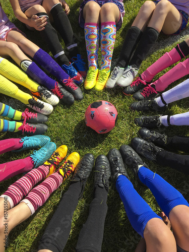 © Brocreative, Naklejka premium Club soccer team sitting around a soccer ball
