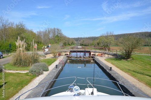 Fototapeta premium écluse canal de bourgogne navigation plaisance