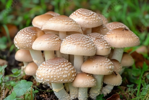 © Napat.T, Obraz premium Cluster of Beautiful Wild Mushrooms Growing in Forest Environment