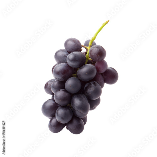 © Matt, Fototapeta premium Cluster of dark purple grapes on a green stem with transparent background