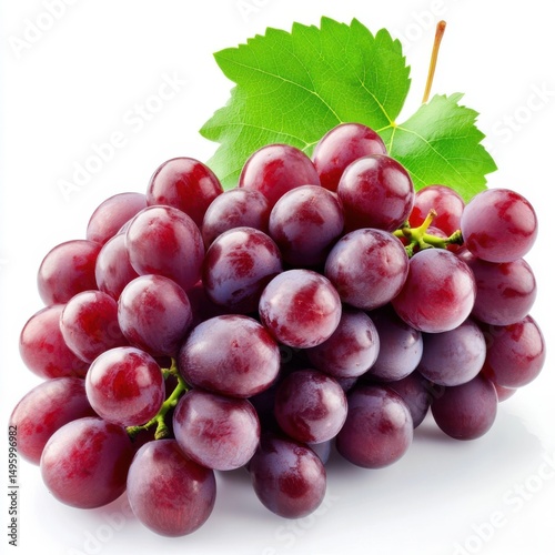 © Miraj Ahsan, Fototapeta premium Cluster of fresh red grapes with a leaf isolated on white background