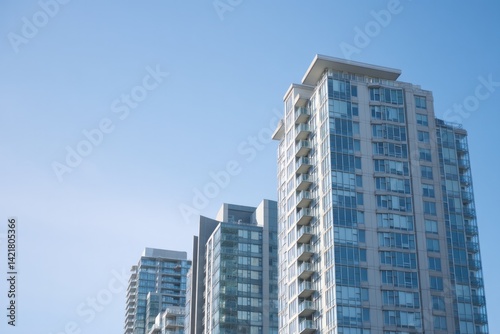 Naklejka premium cluster of modern minimalistic apartment buildings against clear blue sky
