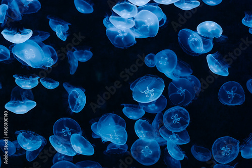 © IBRESTER, Obraz premium Cluster of moon jellyfish. aurelia aurita