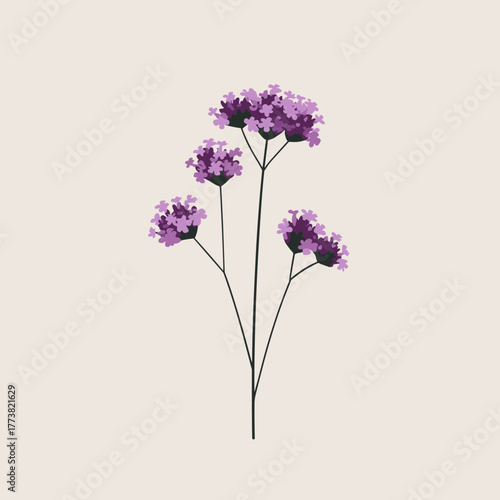 Fototapeta premium Cluster of purple Verbena blossoms on slender stems — soft modern botanical vector illustration