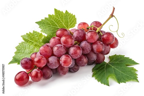 © YouthArt, Obraz premium Cluster of red grapes with leaves – isolated harvest produce