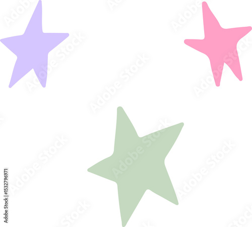 © vectorfusionart, Fototapeta premium Cluster of three pastel stars is floating over transparent background, featuring flat design style