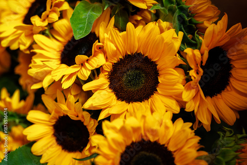 Fototapeta premium Cluster of vivid blooming sunflowers