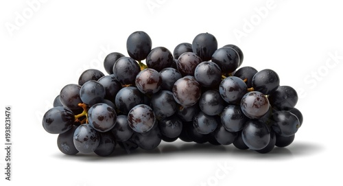 Fototapeta premium Clustered black grapes including stems on white plain background