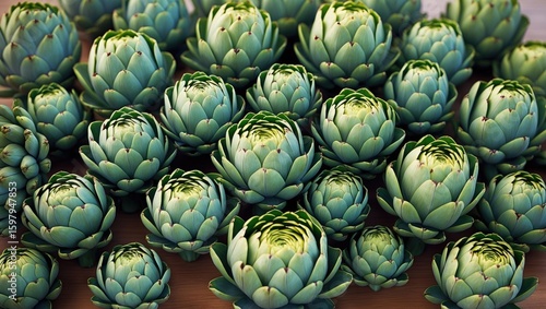 Fototapeta premium Clusters of green and blue succulent plants arranged together, showcasing...