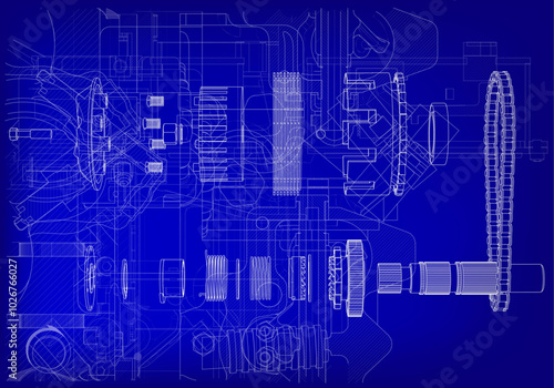 © VLADIMIR NIKIFOROV , Obraz premium Clutch and other parts on a blue background.