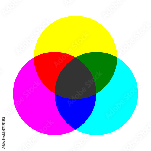 Obraz premium CMYK Subtractive Color Scheme Model with Intersecting Cyan, Magenta, Yellow...