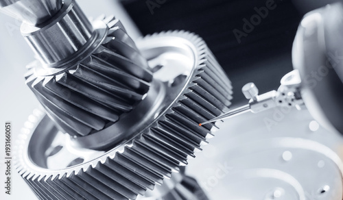 Naklejka premium Cnc coordinate measuring machine analyzing metal gear for precision engineering