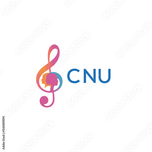 Fototapeta premium CNU “Abstract music school logo with people and melody icon” CNU Later Logo, “Modern music therapy logo with faces and note symbol”