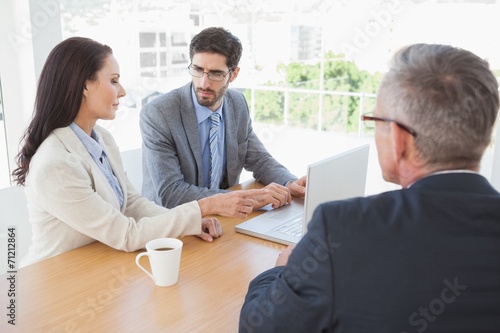 © WavebreakmediaMicro, Obraz premium Co workers all looking at a laptop