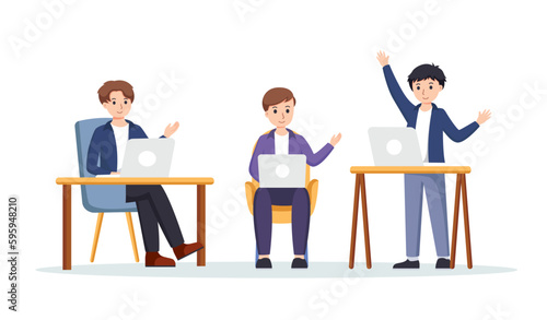 Obraz premium co-working space or remotely at home vector illustration