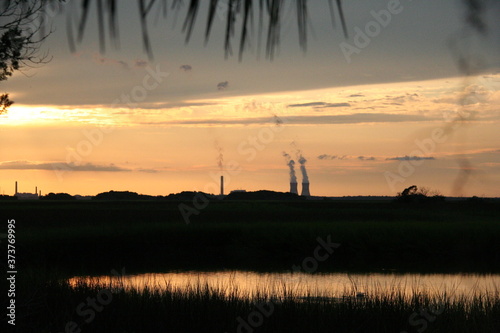 Naklejka premium Coal-fired power plant beyond the marsh