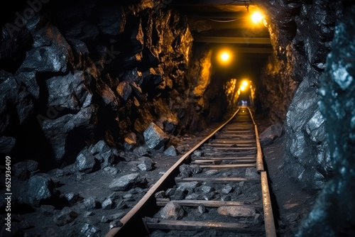 © nordroden, Naklejka premium Coal mine tunnel features transport rails