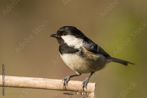 © Luka, Obraz premium Coal tit (Periparus ater) or cole tit, black-crested tit, very small bird in family Paridae. Tiny bird with white nape spot on its black head, white striped tit