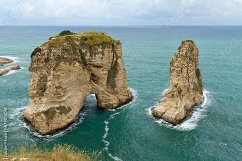© Rostislav, Fototapeta premium Coast of Mediterranean sea in Beirut city. View of Pigeon Rocks. Lebanon.