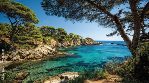 Fototapeta premium Coastal bay with pine trees and turquoise water