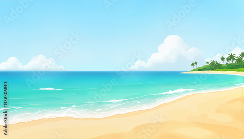 Fototapeta premium Coastal beach scene with golden sands and turquoise waters, tropical paradise