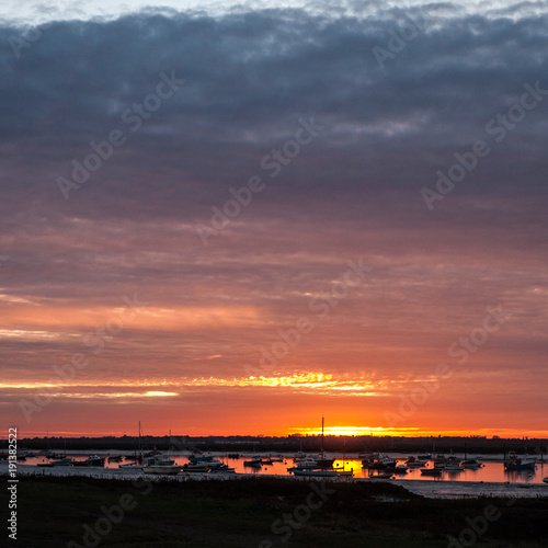 © Callum, Naklejka premium coastal boats beach sun set scene special nature background sky