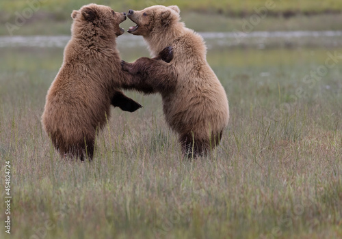 © Carol, Fototapeta premium Coastal Brown Bears digging for clams and grazing on sedge grass Lake Clark, Alaska USA