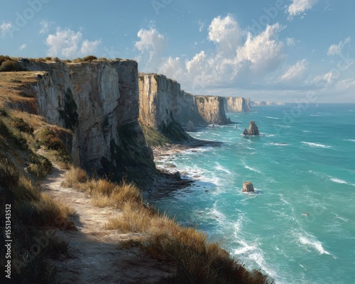 Obraz premium Coastal Cliffs And Turquoise Ocean Waves On A Sunny Day
