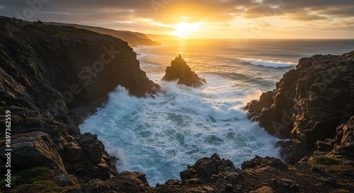 Obraz premium Coastal cliffs ocean sunset dramatic lighting