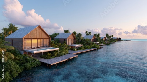 © kwanchanachai, Obraz premium Coastal Community with Beautiful Panoramic View