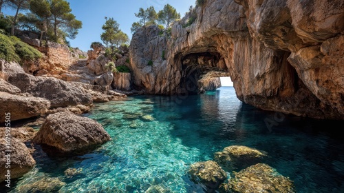 © Opaopi, Fototapeta premium Coastal cove with sea cave