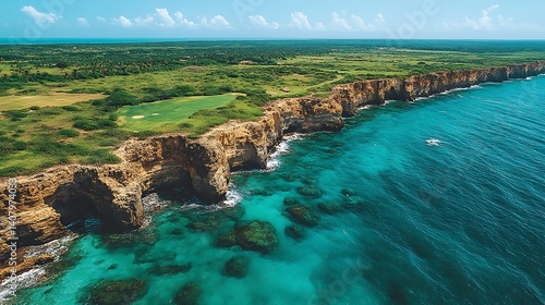 © Kentang, Obraz premium Coastal Golf Course Aerial View