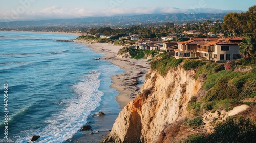 © fabrian, Fototapeta premium Coastal homes perch above sandy beach