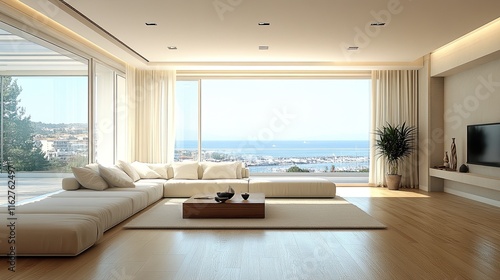 © Happy, Fototapeta premium Coastal-inspired modern living room interior design. --ar