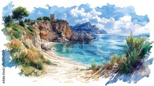 © tian, Fototapeta premium Coastal landscape painting