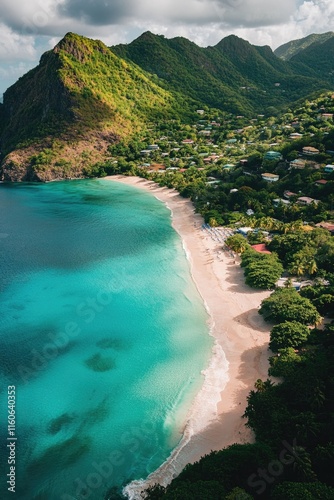 © Vii, Fototapeta premium Coastal landscape with sandy beach and distant mountain range