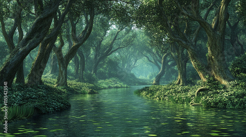 © rafliand, Obraz premium coastal mangrove wetlands with mud crabs, marine conservation area