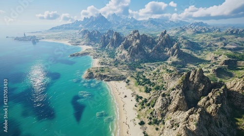 © Rere_Art151, Fototapeta premium Coastal Mountain Range Scenic Beach Landscape View