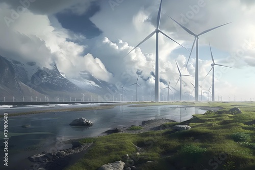 Obraz premium Coastal renewable energy landscape with strategically placed windmills and...