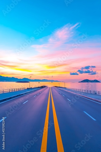 © Liopi, Fototapeta premium Coastal Road Sunset Vista