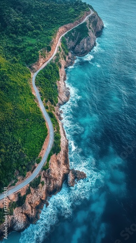 © tydeline, Obraz premium Coastal Road Winding Along Dramatic Cliffs, Turquoise Ocean