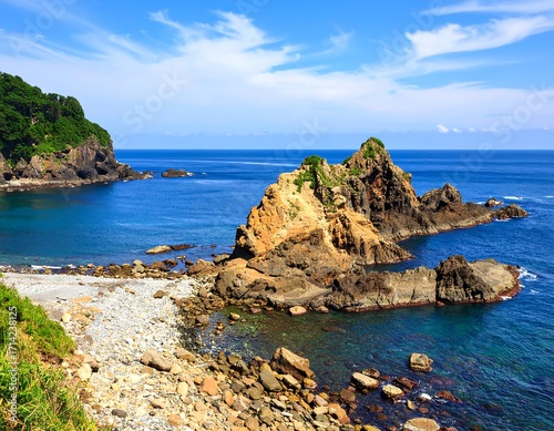 © Rendi, Fototapeta premium Coastal rocks and serene bay